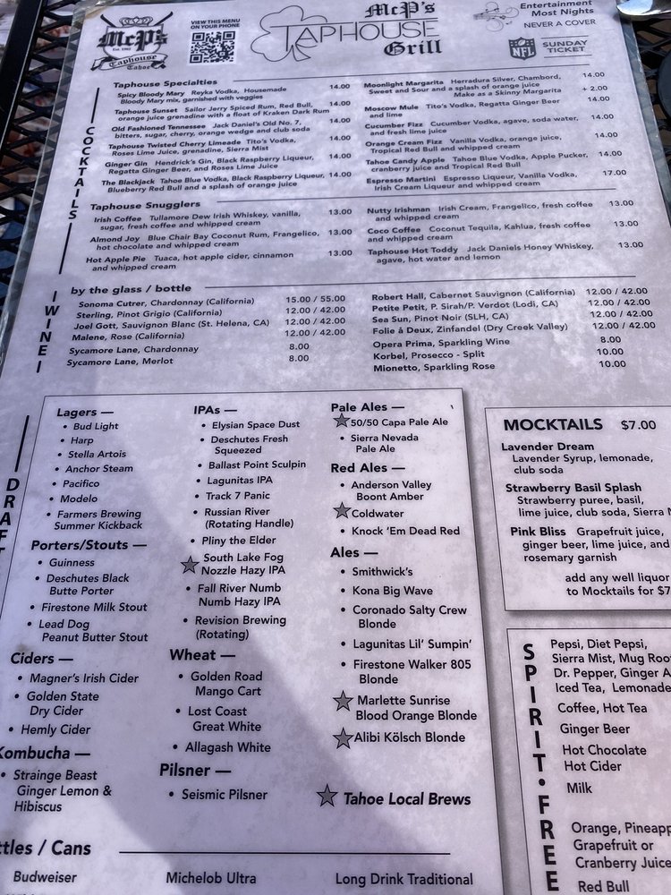 Welcome to McP's Taphouse Grill, a vibrant sports bar nestled in South Lake Tahoe that effortlessly blends casual dining with electrifying nightlife. With a menu that tantalizes the taste buds, McP's offers a variety of dishes, from the crisp Irish Fries with Guinness gravy to the hearty Ol Dublin burger, praised for its flavorful double patties and crispy corned beef.